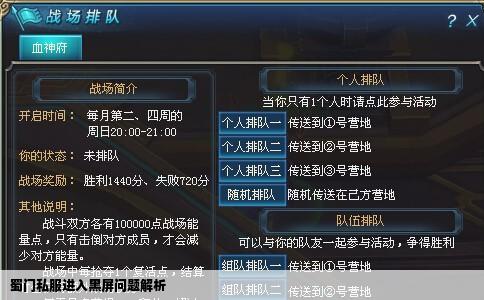 蜀门私服进入黑屏问题解析